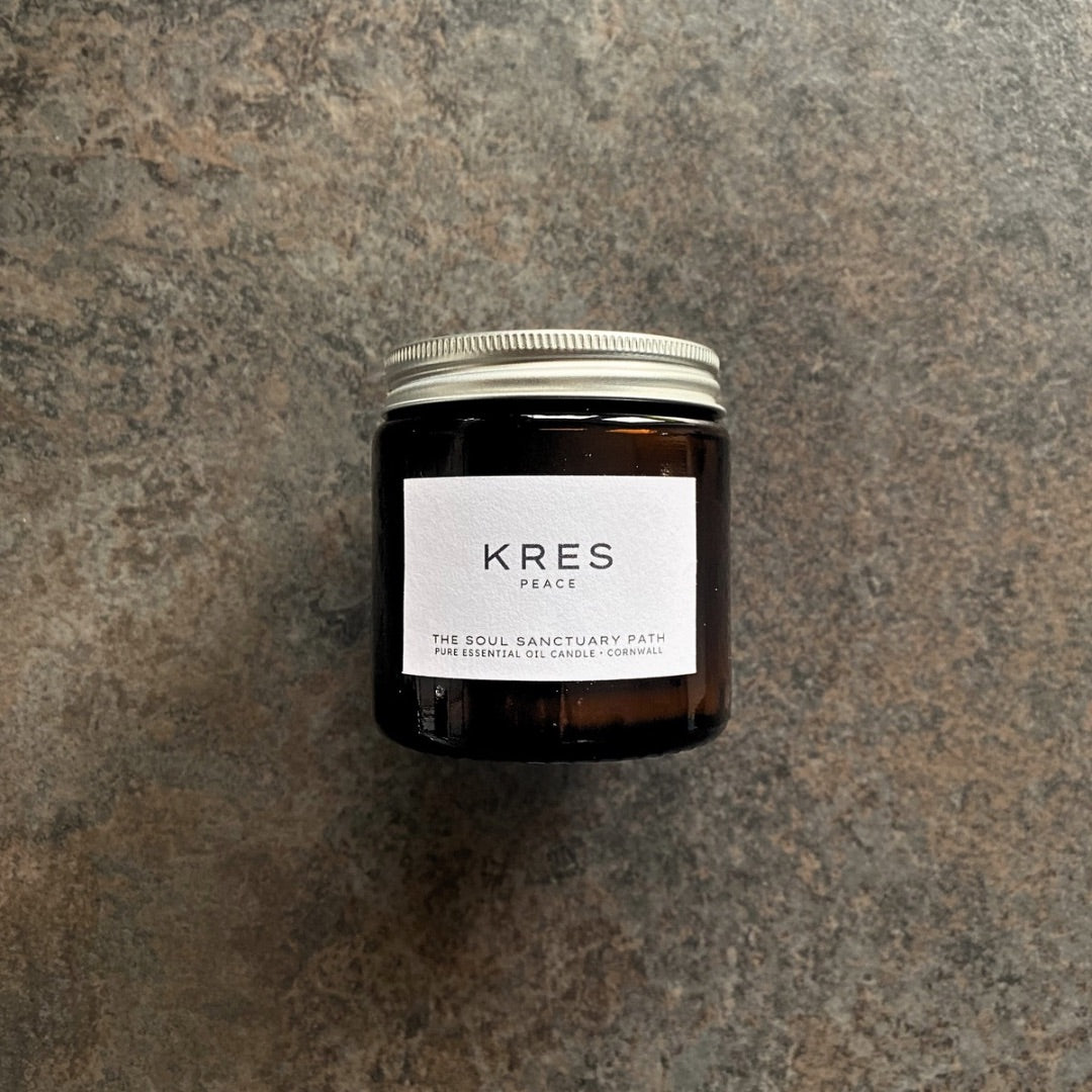 KRES, meaning ‘Peace’ in Cornish, is a pure essential oil candle that has an almost incense aroma that supports mental clarity, emotional openness, and a sense of being grounded, while inviting love and self-compassion into your space.
